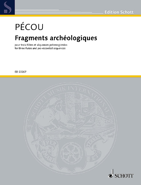 Digital Sheet Music for Fragments archéologiques - Score and Parts by Thierry Pécou scored for 3 Flutes And Pre-recorded Sequences; id:487041