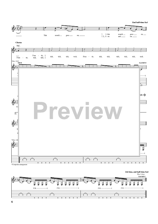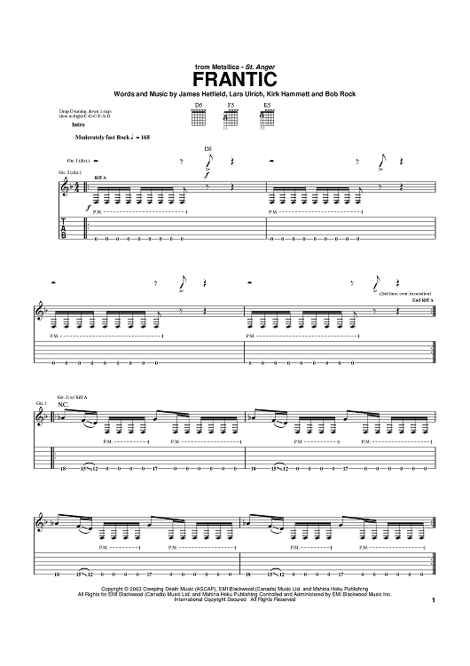 Digital Sheet Music for Frantic by Metallica, Kirk Hammett, James Hetfield, Lars Ulrich scored for Guitar Tab; id:371707