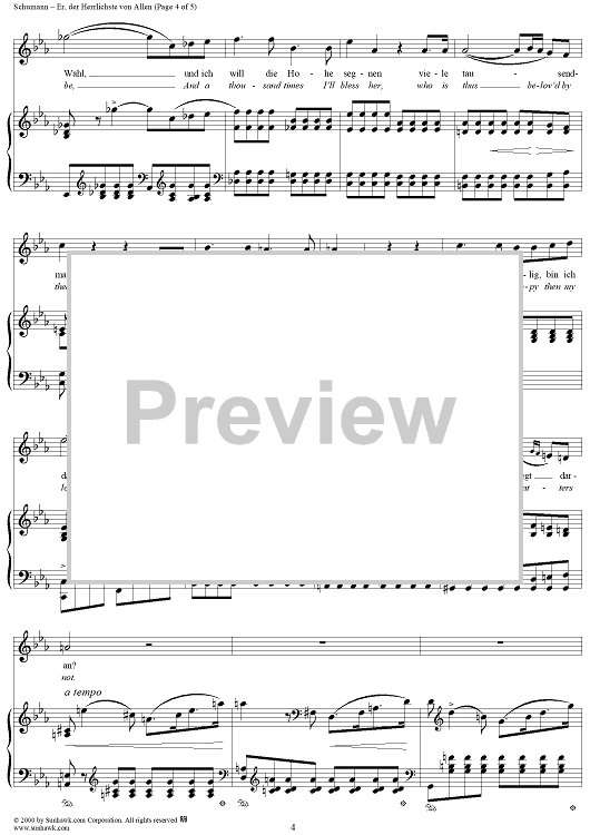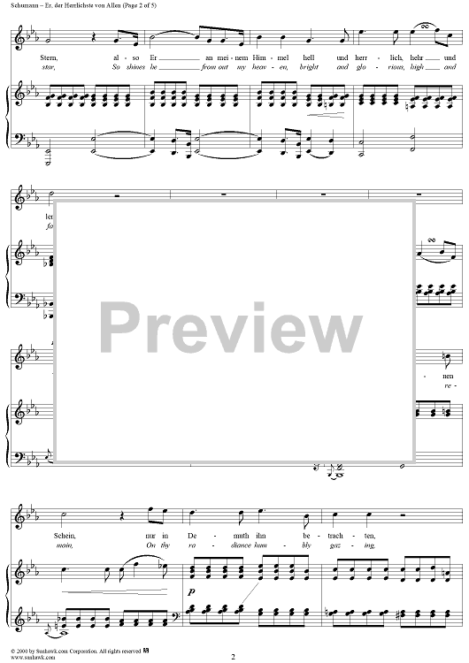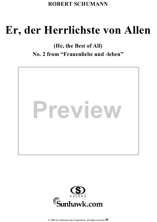 Digital Sheet Music for Frauenliebe und -leben (Song Cycle), Op. 42, No. 2 - Er, der Herrlichste von Allen - No. 2 from "Frauenliebe und -leben" op. 42 by Robert Schumann, Adalbert von Chamisso scored for Voice/Piano; id:257363