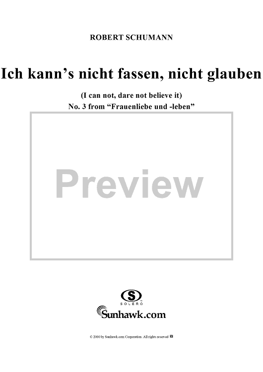 "Frauenliebe und -leben (Song Cycle), Op. 42, No. 3 - Ich kann's nicht fassen, nicht glauben - No. 3 from "Frauenliebe und -leben" op. 42" Sheet Music by Robert Schumann