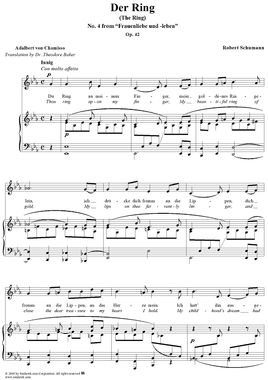 Digital Sheet Music for Frauenliebe und -leben (Song Cycle), Op. 42, No. 4 - Du Ring am meinem Finger - No. 4 from "Frauenliebe und -leben" op. 42 by Robert Schumann, Adalbert von Chamisso scored for Voice/Piano; id:257365