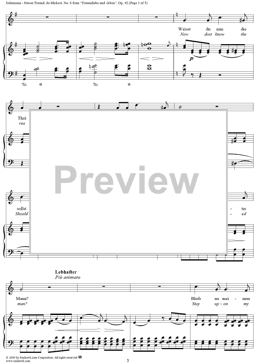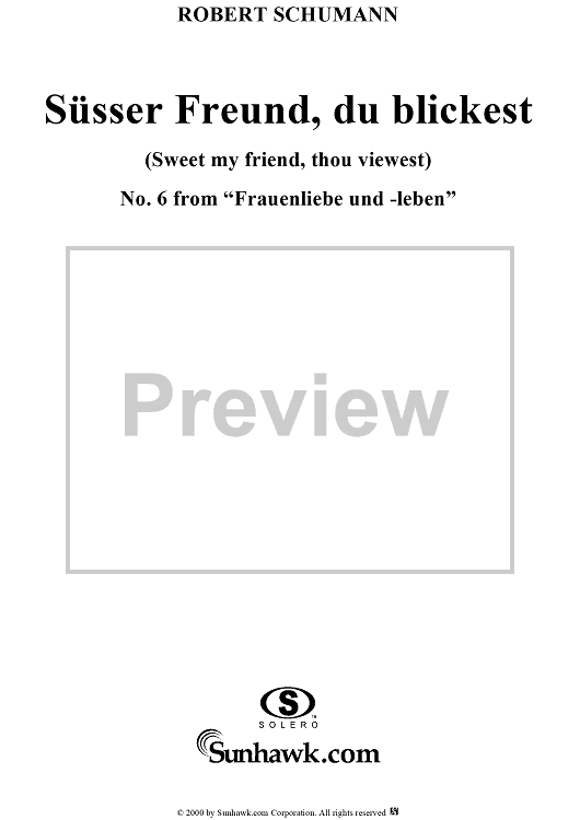 Digital Sheet Music for Frauenliebe und -leben (Song Cycle), Op. 42, No. 6 - Süsser Freund, du blickest mich verwundert an - No. 6 from "Frauenliebe und -leben" op. 42 by Robert Schumann, Adalbert von Chamisso scored for Voice/Piano; id:257367