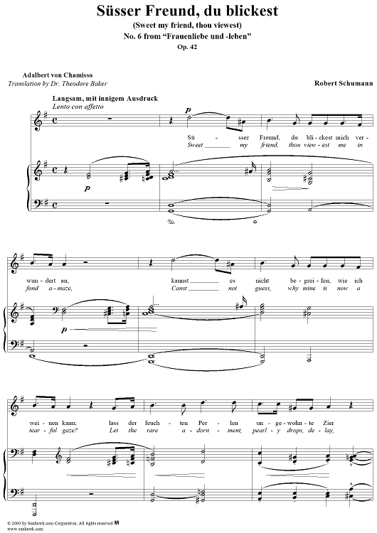 "Frauenliebe und -leben (Song Cycle), Op. 42, No. 6 - Süsser Freund, du blickest mich verwundert an - No. 6 from "Frauenliebe und -leben" op. 42" Sheet Music by Robert Schumann