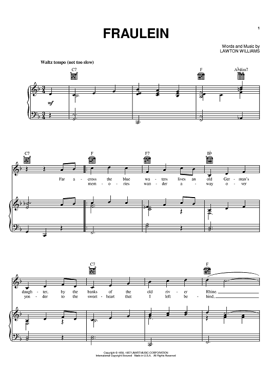 Digital Sheet Music for Fraulein by Lawton Williams, Willie Nelson scored for Piano/Vocal/Chords; id:374395