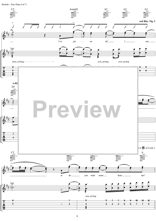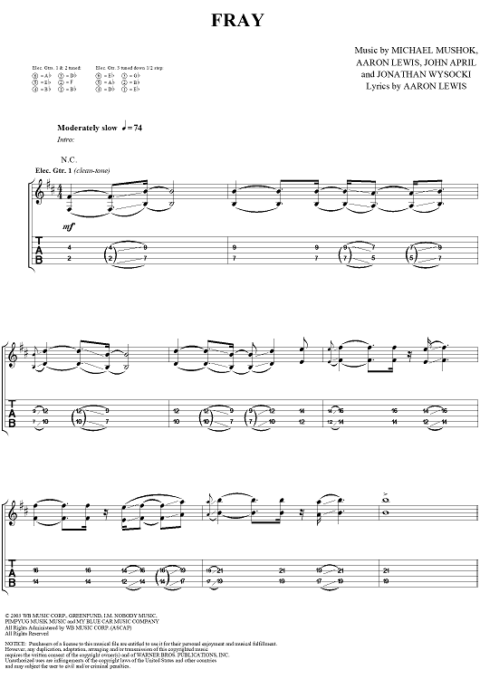 Digital Sheet Music for Fray by Aaron Lewis, Michael Mushok, Jonathan Wysocki, John April, Staind scored for Guitar Tab/Vocal; id:297771