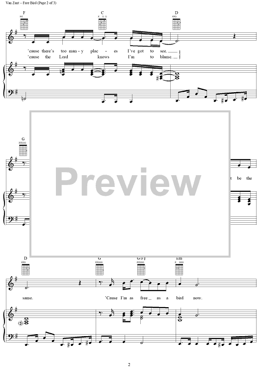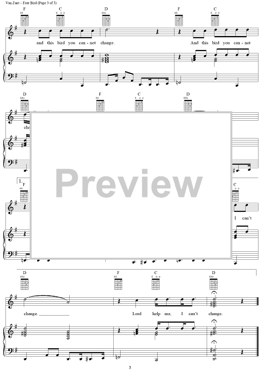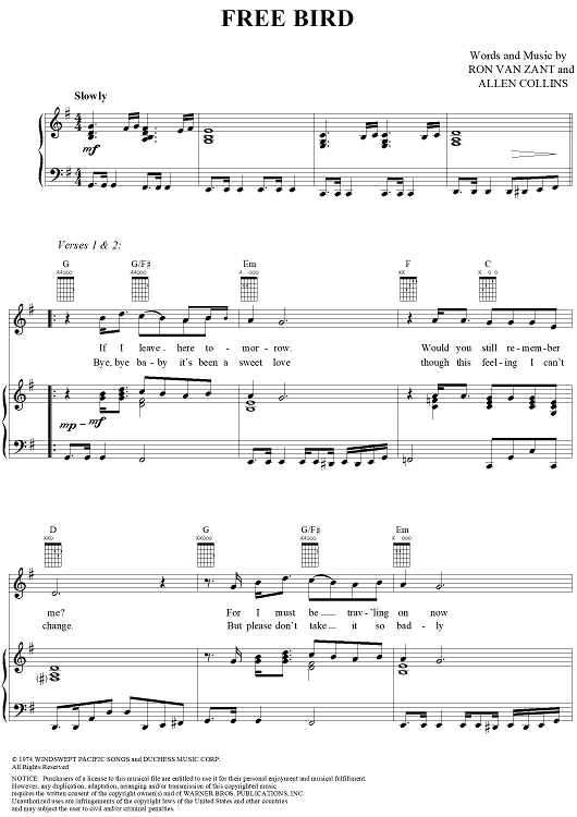 Digital Sheet Music for Free Bird by Lynyrd Skynyrd, Allen Collins, Ronnie Van Zant scored for Piano/Vocal/Chords; id:120813