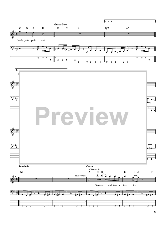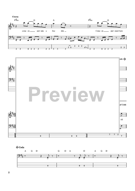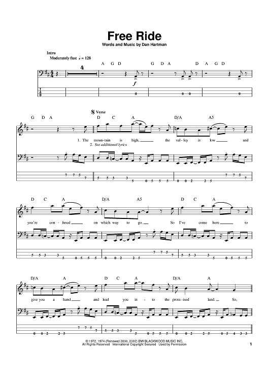 Digital Sheet Music for Free Ride by Dan Hartman, Edgar Winter Group scored for Bass Tab; id:388285