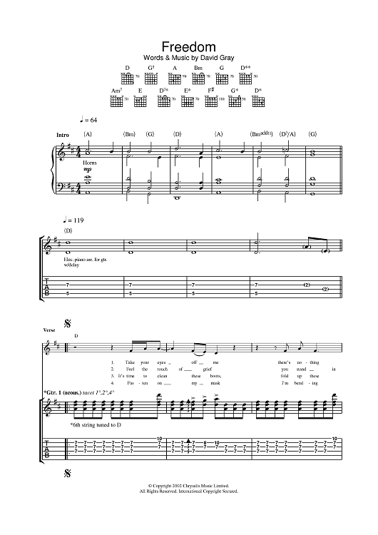 Digital Sheet Music for Freedom by David Gray scored for Guitar Tab; id:377773
