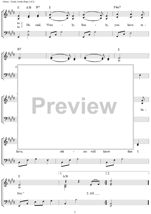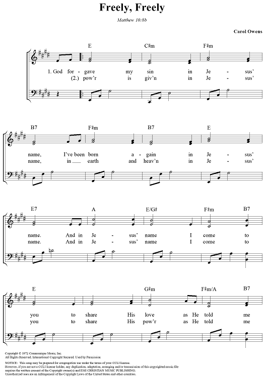 Digital Sheet Music for Freely, Freely by Carol Owens scored for Piano/Vocal/Chords; id:111685
