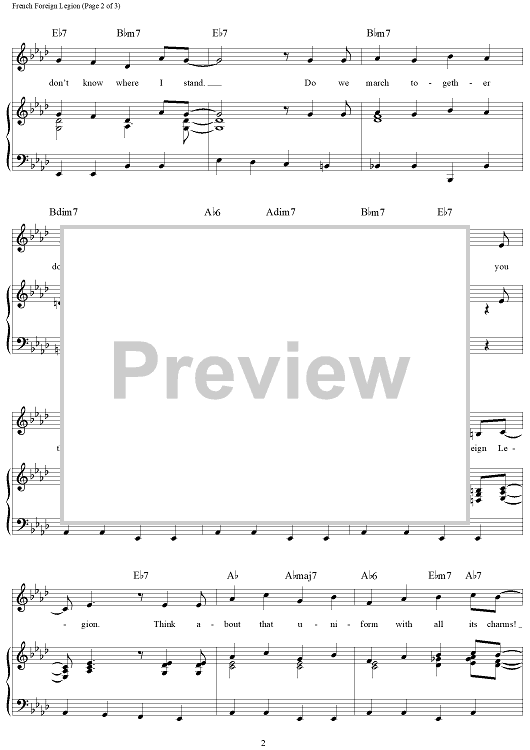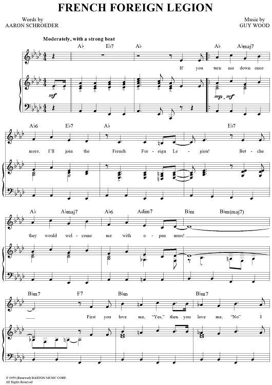 Digital Sheet Music for French Foreign Legion by Frank Sinatra, Guy Wood, Aaron Schroeder scored for Piano/Vocal/Chords; id:111888