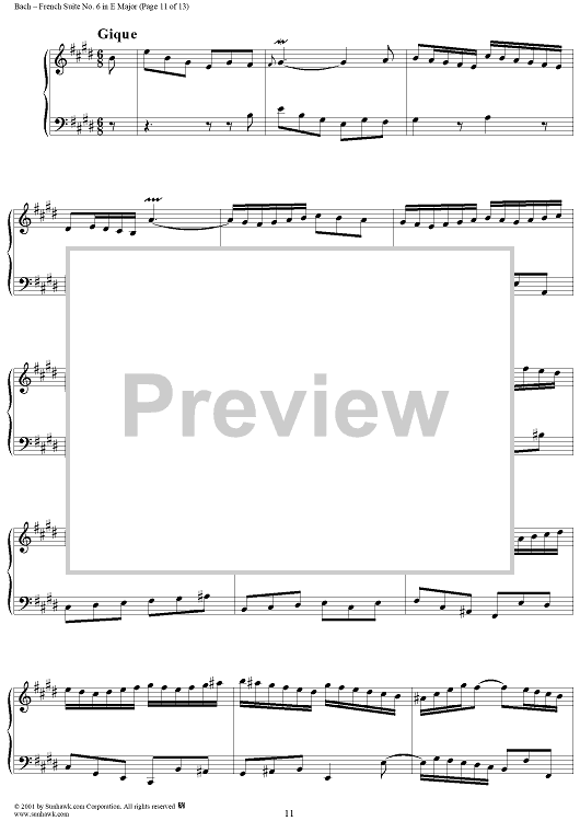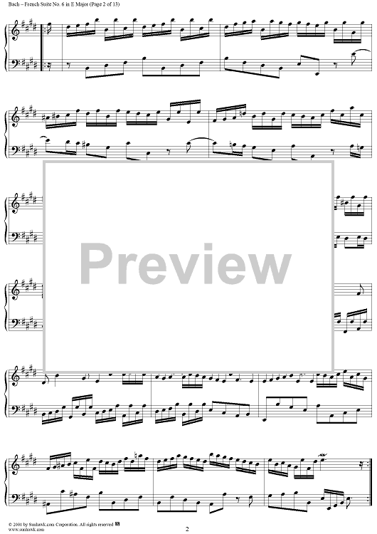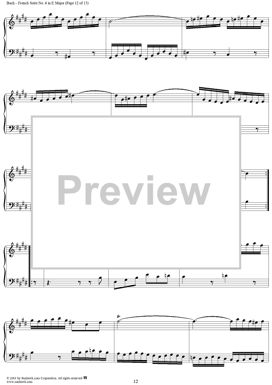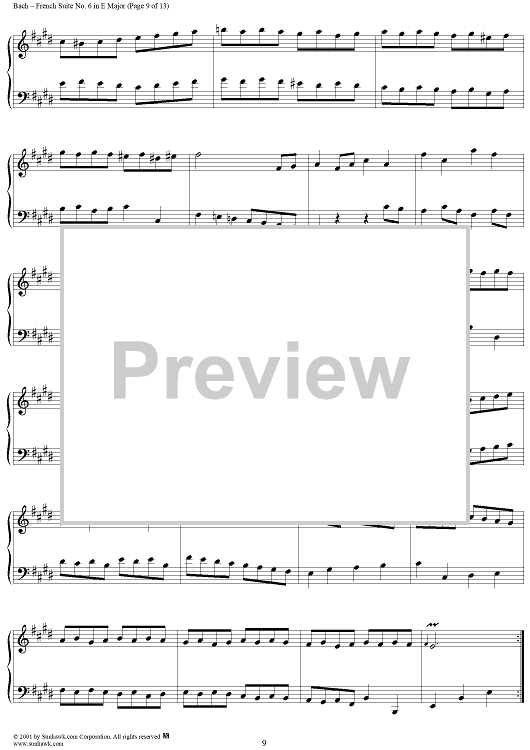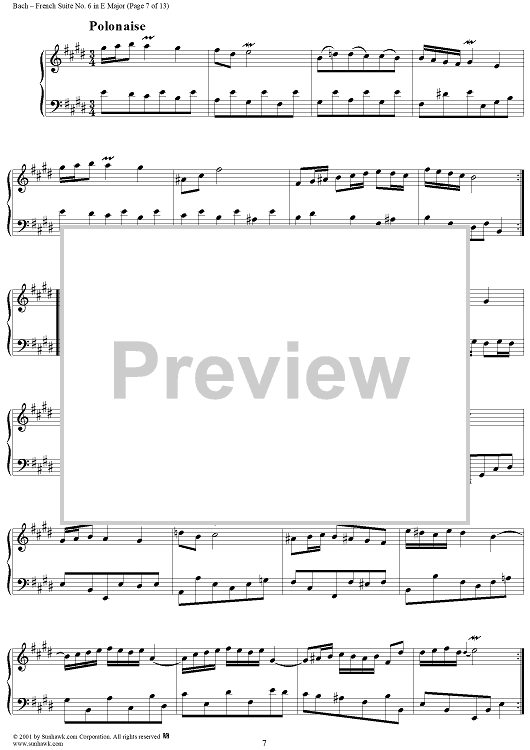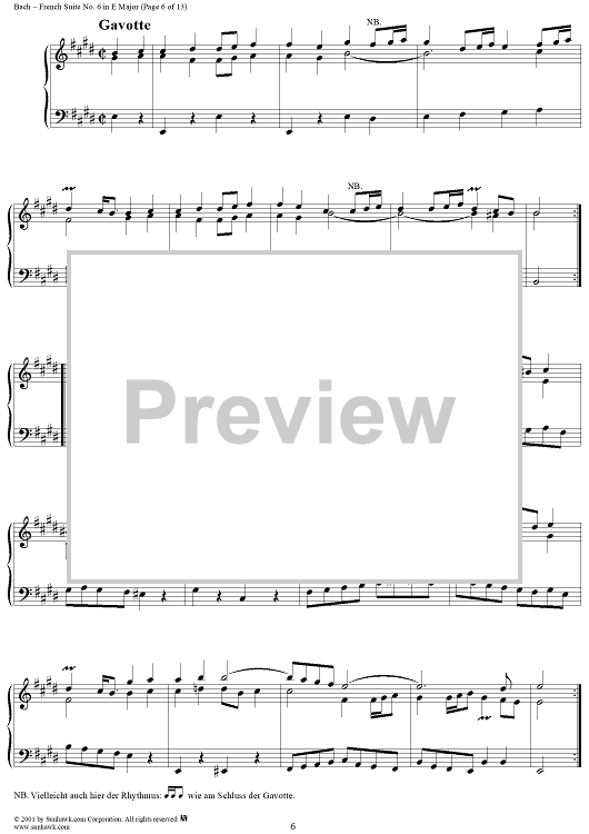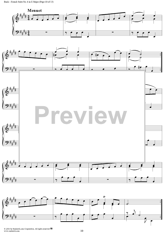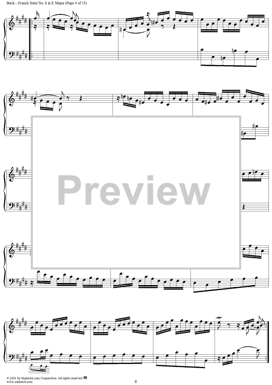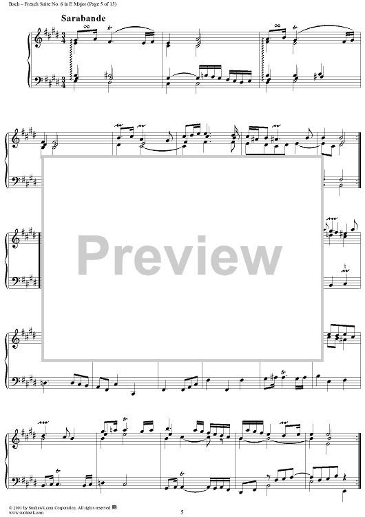 Digital Sheet Music for French Suite No. 6 in E Major (BWV817) by Johann Sebastian Bach scored for Piano Solo; id:275817