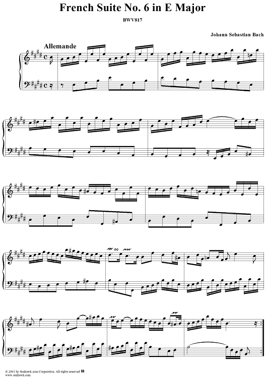 "French Suite No. 6 in E Major (BWV817)" Sheet Music by Johann Sebastian Bach