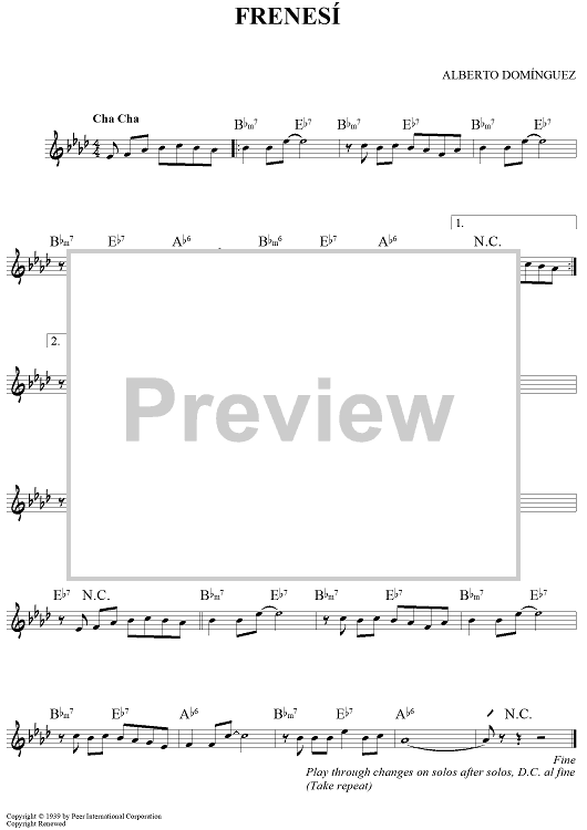 Digital Sheet Music for Frenesí by Alberto Dominguez scored for Lead Sheet; id:448999