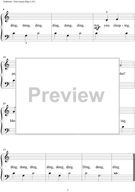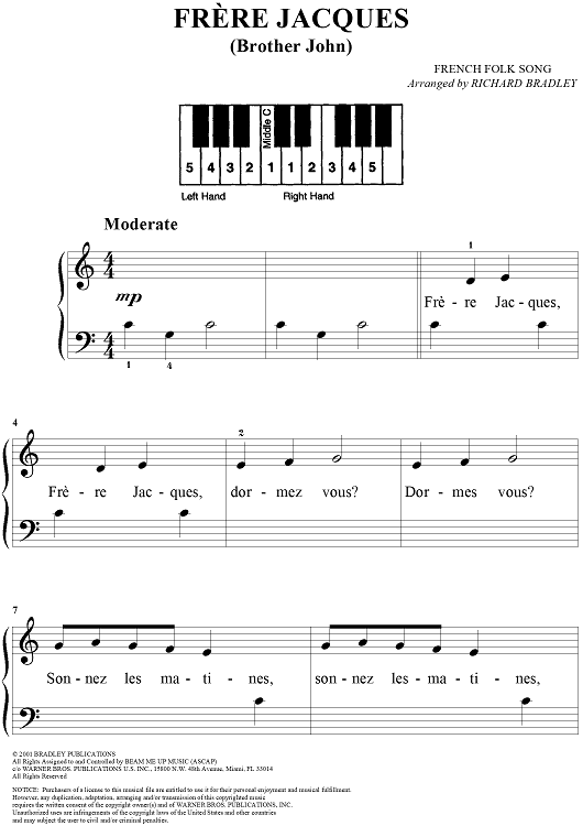 Digital Sheet Music for Frère Jacques by Richard Bradley, French Folk Song scored for Five Finger Piano; id:283378