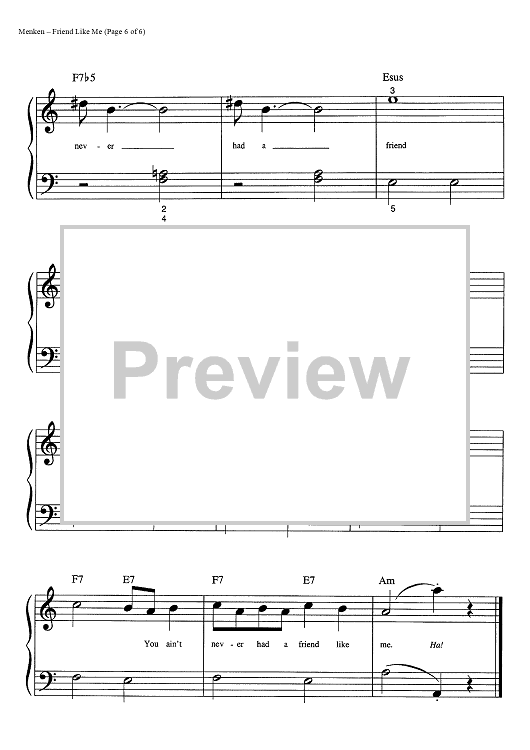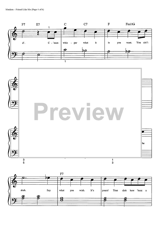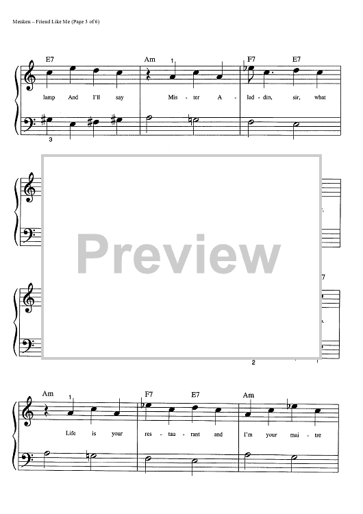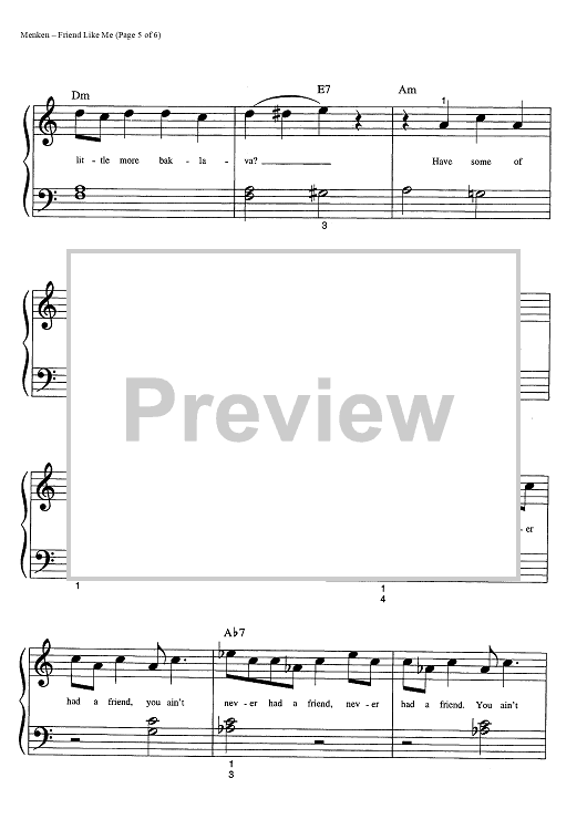Digital Sheet Music for Friend Like Me by Alan Menken, Howard Ashman scored for Big Note Piano; id:445077