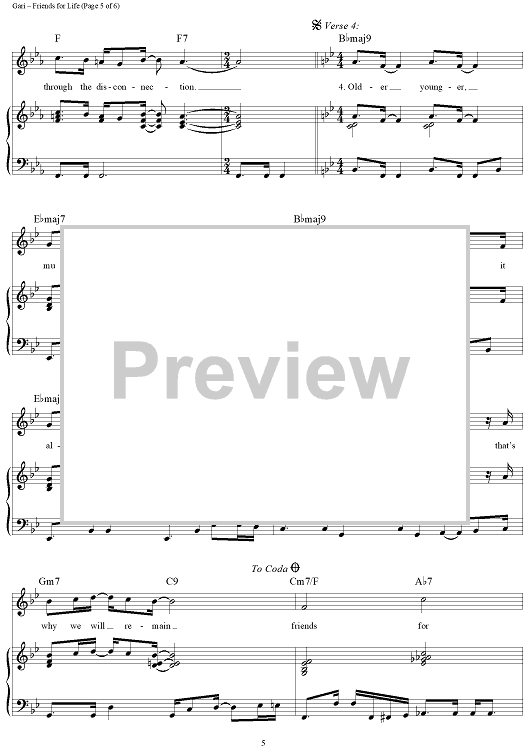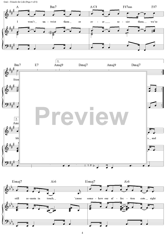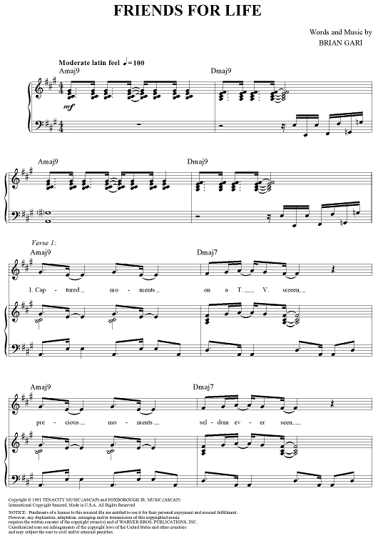 Digital Sheet Music for Friends for Life by Brian Gari scored for Piano/Vocal/Chords; id:355054