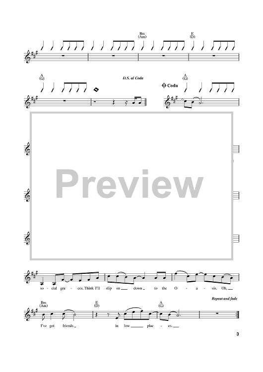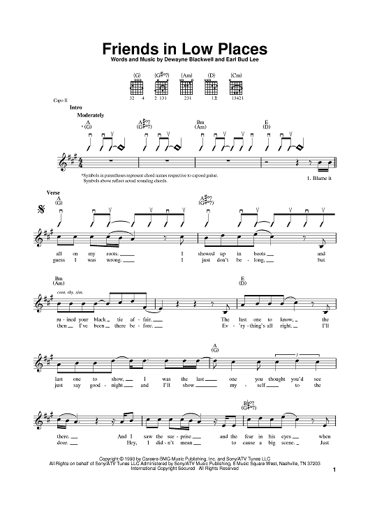 "Friends In Low Places" Sheet Music by Garth Brooks