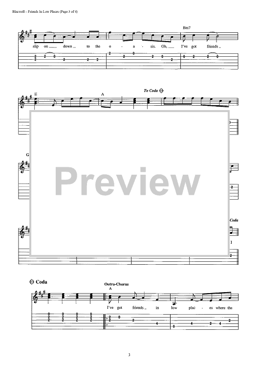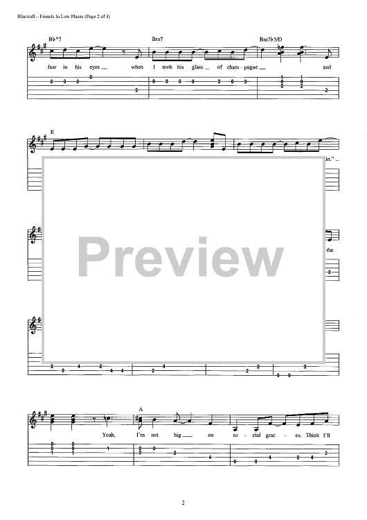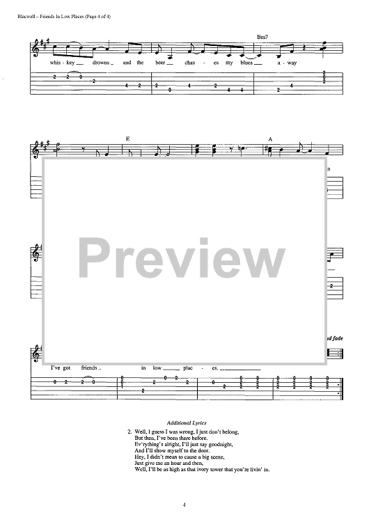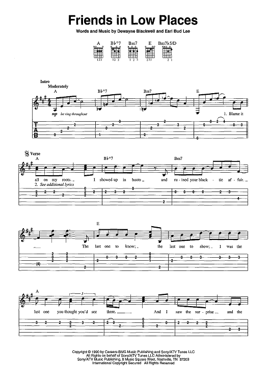 Digital Sheet Music for Friends In Low Places by Chris Gaines, DeWayne Blackwell, Earl Bud Lee scored for Easy Guitar Tab/Vocal; id:441395