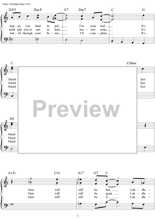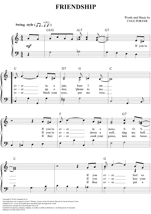 Digital Sheet Music for Friendship by Cole Porter scored for Easy Piano/Vocal/Chords; id:432955