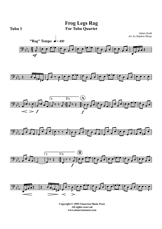 "Frog Legs Rag - Tuba 1" Sheet Music by James Scott