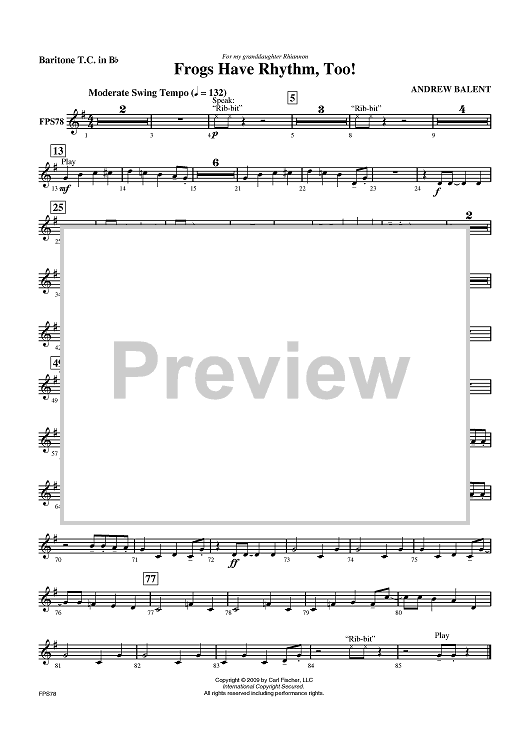 "Frogs Have Rhythm Too! - Baritone TC" Sheet Music by Andrew Balent