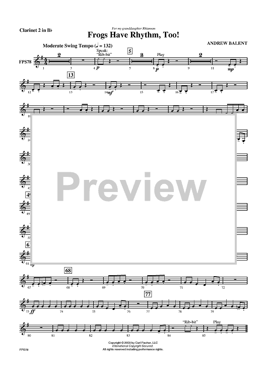 "Frogs Have Rhythm Too! - Clarinet 2 in B-flat" Sheet Music by Andrew Balent