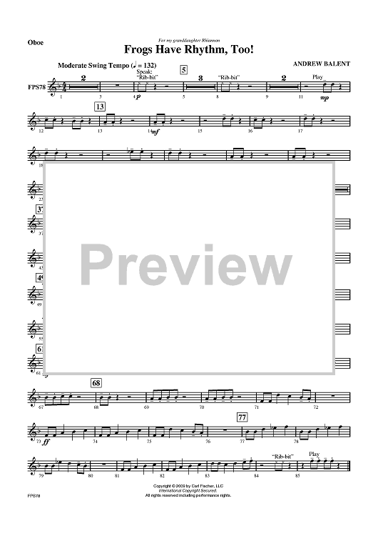 "Frogs Have Rhythm Too! - Oboe" Sheet Music by Andrew Balent