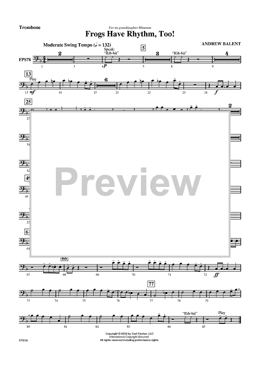 "Frogs Have Rhythm Too! - Trombone" Sheet Music by Andrew Balent