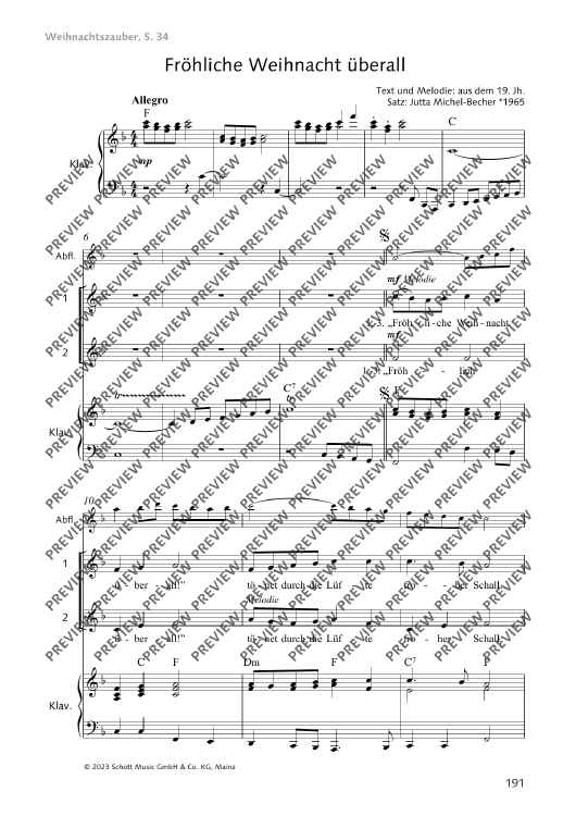 Digital Sheet Music for Fröhliche Weihnacht überall by Jutta Michel-Becher, Traditionell scored for For Two Part Choir And Piano, Alto Recorder Ad Lib.; id:500062