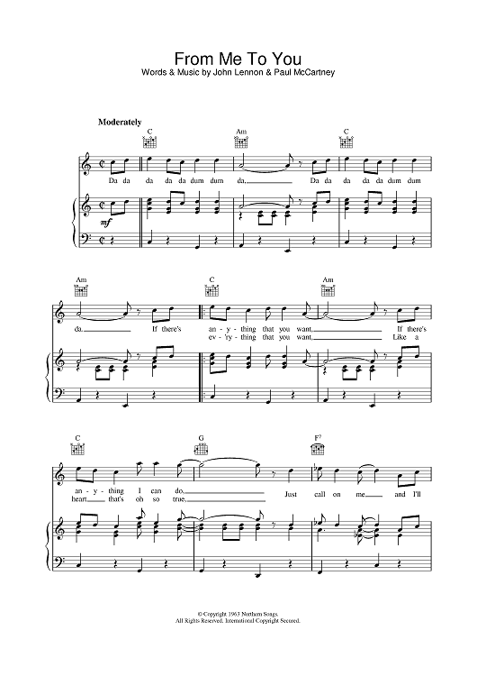 Digital Sheet Music for From Me To You by Paul McCartney, The Beatles, John Lennon scored for Piano/Vocal/Chords; id:378980