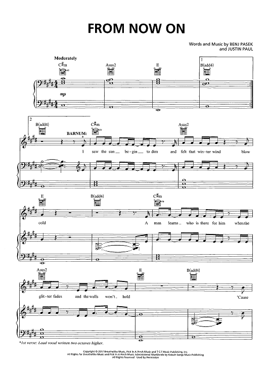 Digital Sheet Music for From Now On - from The Greatest Showman by Benj Pasek, Justin Paul scored for Piano/Vocal/Chords; id:466074