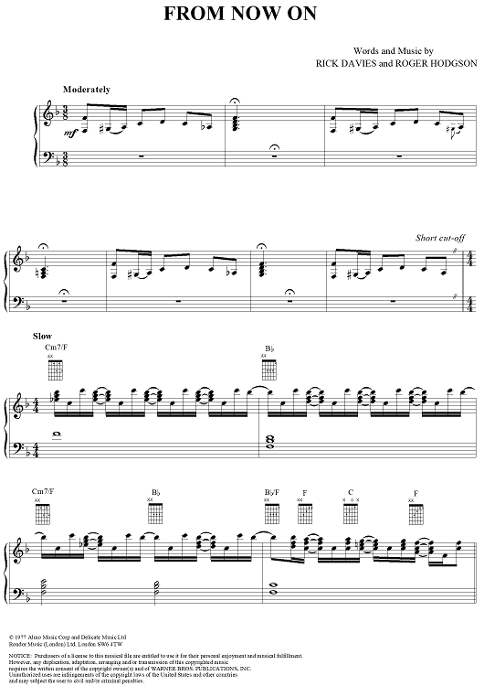 Digital Sheet Music for From Now On by Rick Davies, Roger Hodgson, Supertramp scored for Piano/Vocal/Chords; id:271886
