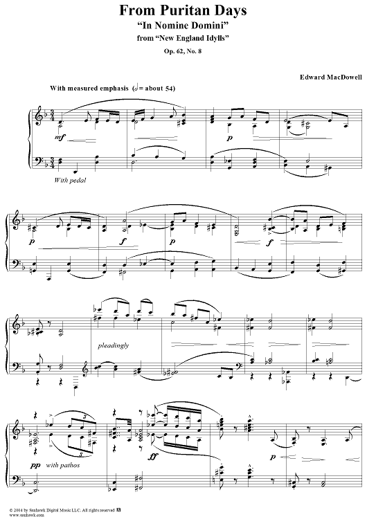 Digital Sheet Music for From Puritan Days, Op. 62, No. 8 by Edward MacDowell scored for Piano Solo; id:295519