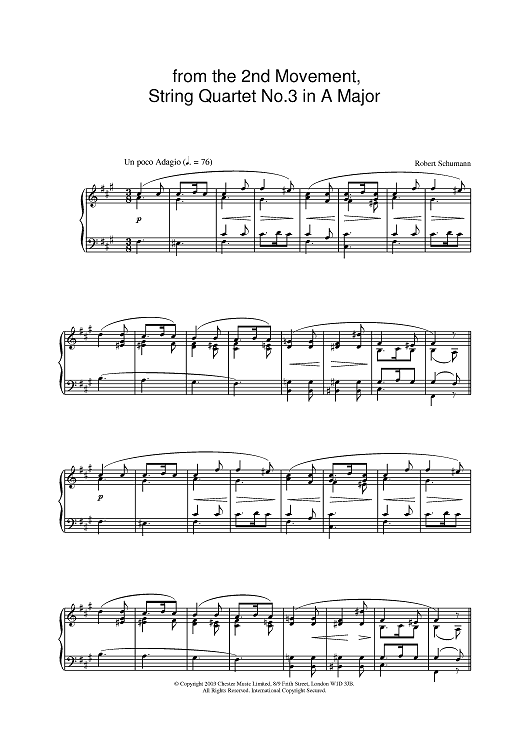 Digital Sheet Music for from the 2nd Movement, String Quartet No.3 in A Major by Robert Schumann scored for Piano; id:378917