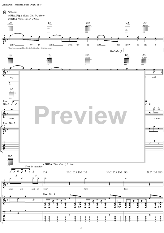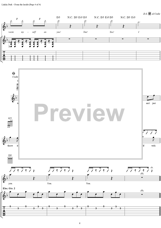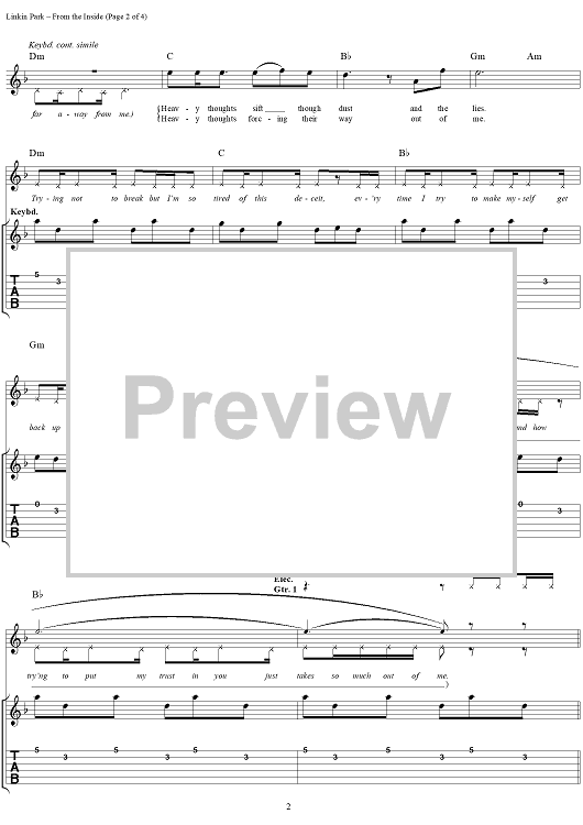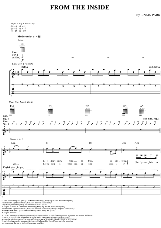 Digital Sheet Music for From the Inside by Linkin Park scored for Guitar Tab/Vocal; id:297398
