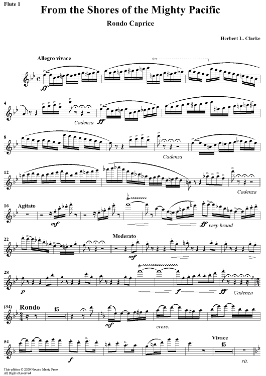 Digital Sheet Music for From the Shores of the Mighty Pacific - Flute 1 by Herbert L. Clarke scored for Concert Band; id:281812