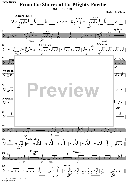 "From the Shores of the Mighty Pacific - Snare Drum" Sheet Music by Herbert L. Clarke