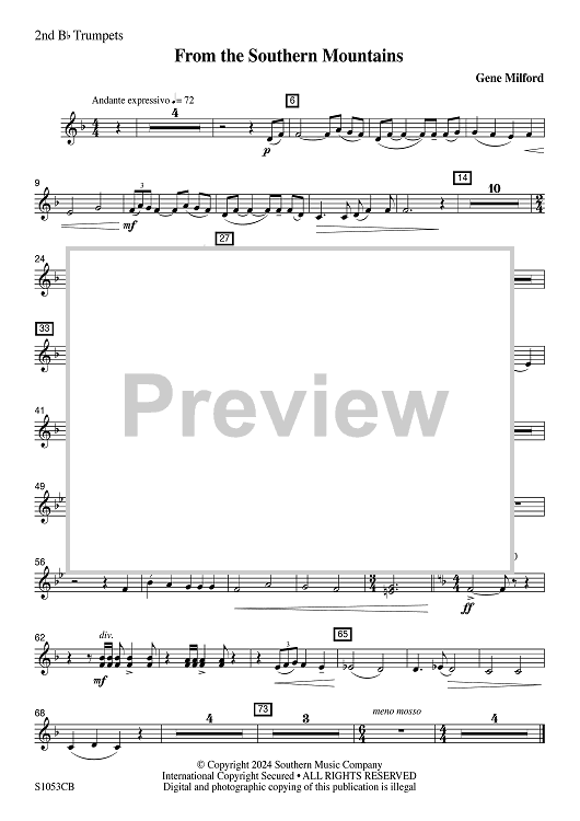 Digital Sheet Music for From the Southern Mountains - 2nd Bb Trumpets by Traditional, Gene Milford scored for Concert Band; id:506517