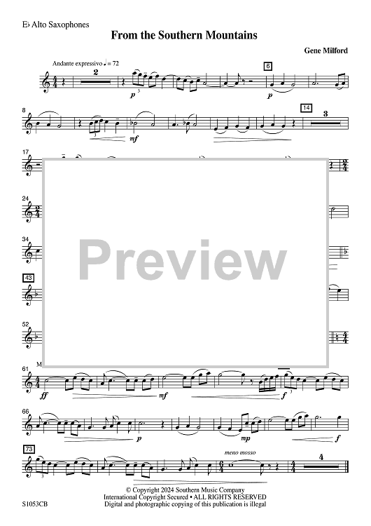 Digital Sheet Music for From the Southern Mountains - Eb Alto Saxophones by Traditional, Gene Milford scored for Concert Band; id:506513
