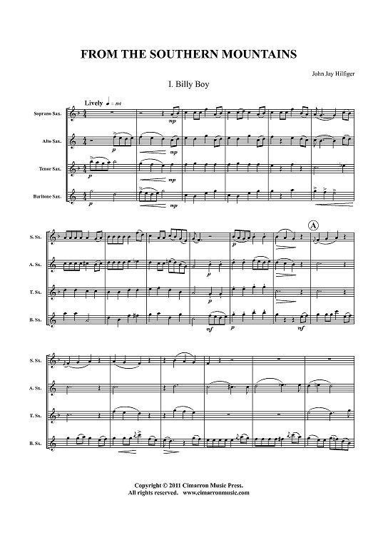 Digital Sheet Music for From the Southern Mountains by John Jay Hilfiger, Traditional scored for Saxophone Quartet; id:425226