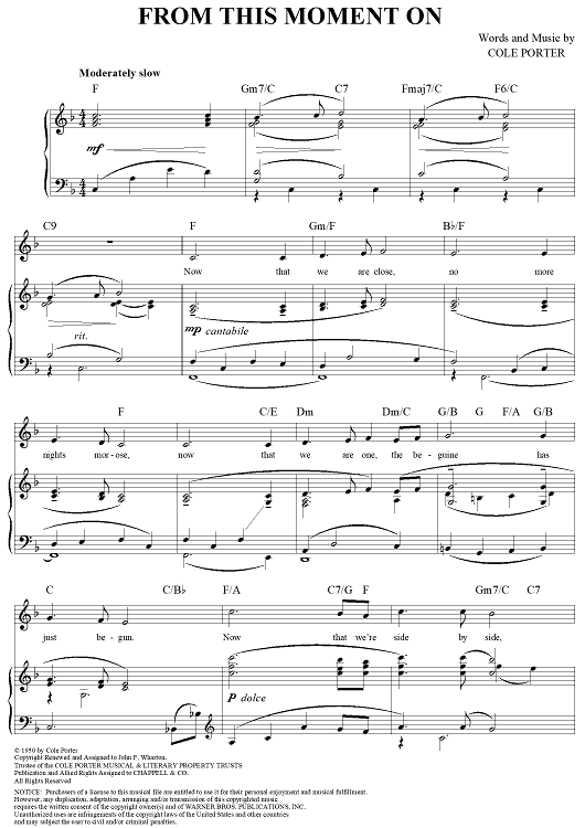 Digital Sheet Music for From This Moment On by Cole Porter scored for Piano/Vocal/Chords; id:297856