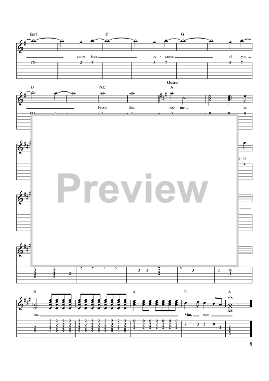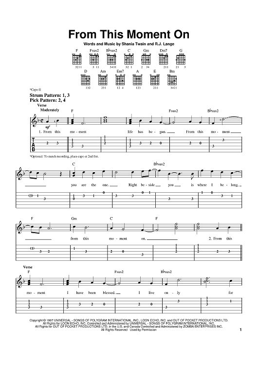 Digital Sheet Music for From This Moment On by Shania Twain, Robert Lange scored for Easy Guitar Tab; id:383586
