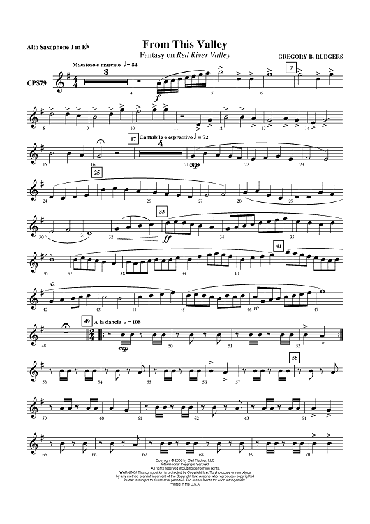 Digital Sheet Music for From This Valley - Alto Sax 1 by Gregory B. Rudgers scored for Concert Band; id:408786