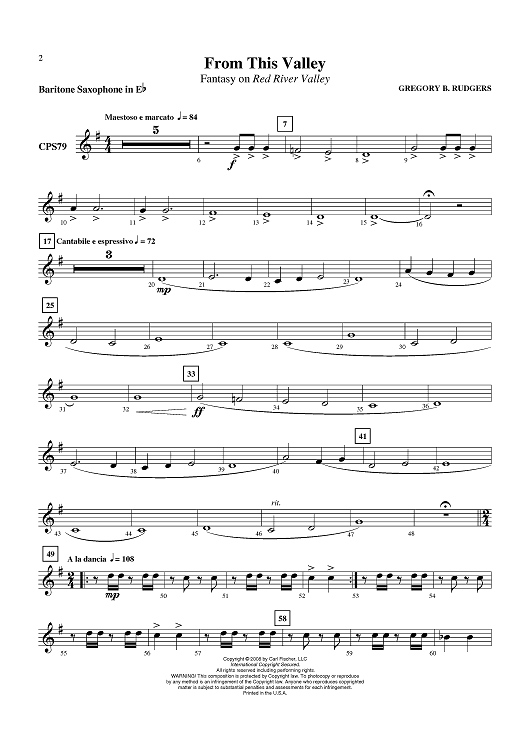 "From This Valley - Baritone Sax" Sheet Music by Gregory B. Rudgers