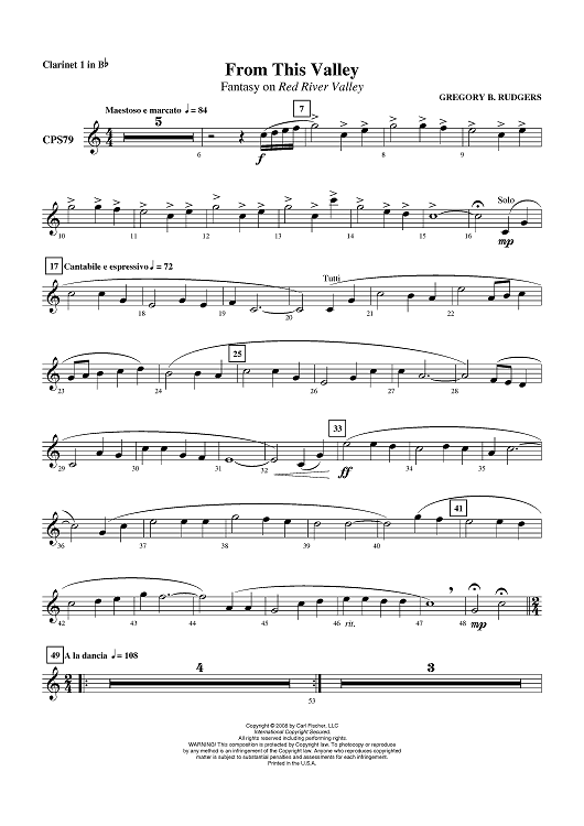 "From This Valley - Clarinet 1 in B-flat" Sheet Music by Gregory B. Rudgers