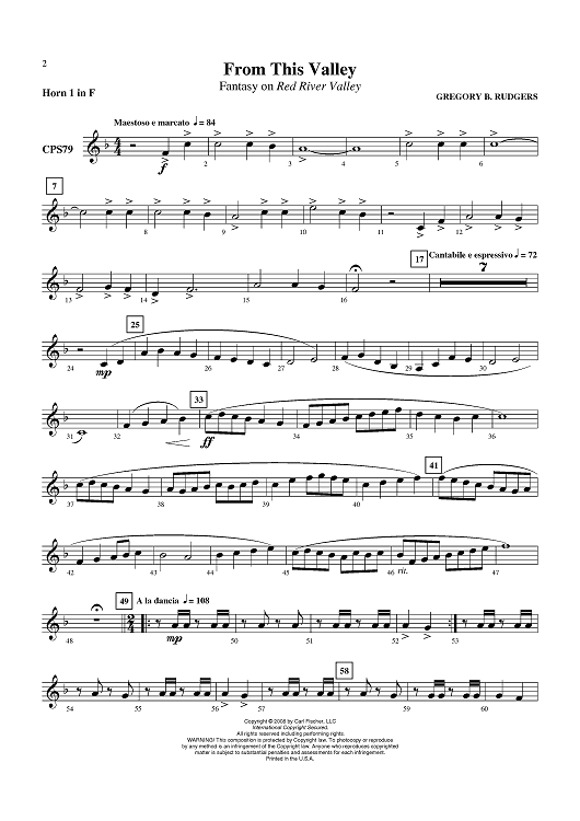Digital Sheet Music for From This Valley - Horn in F 1 by Gregory B. Rudgers scored for Concert Band; id:408793