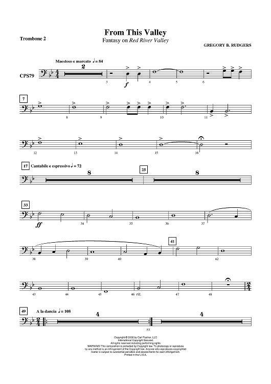 Digital Sheet Music for From This Valley - Trombone 2 by Gregory B. Rudgers scored for Concert Band; id:408796