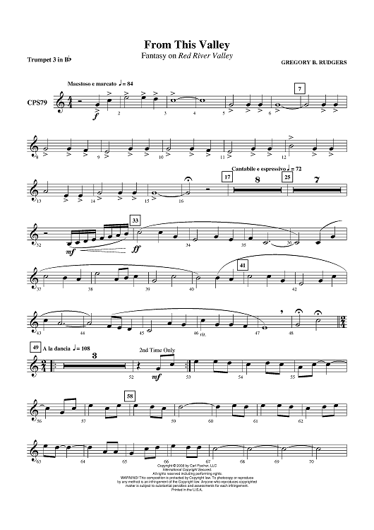 Digital Sheet Music for From This Valley - Trumpet 3 in B-flat by Gregory B. Rudgers scored for Concert Band; id:408792