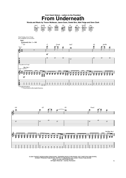 Digital Sheet Music for From Underneath by Dave Clark, Brio Biro, Jason Dunn, Hawk Nelson, Teerawk, Matty Paige scored for Guitar Tab; id:383663