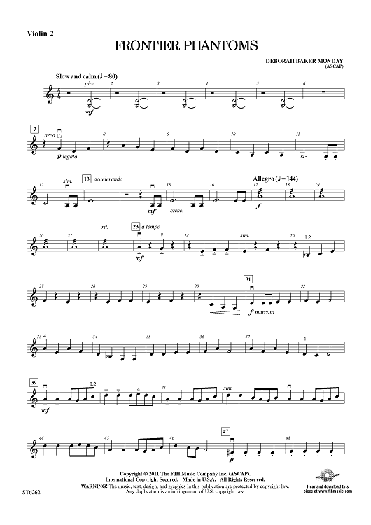 "Frontier Phantoms - Violin 2" Sheet Music by Deborah Baker Monday